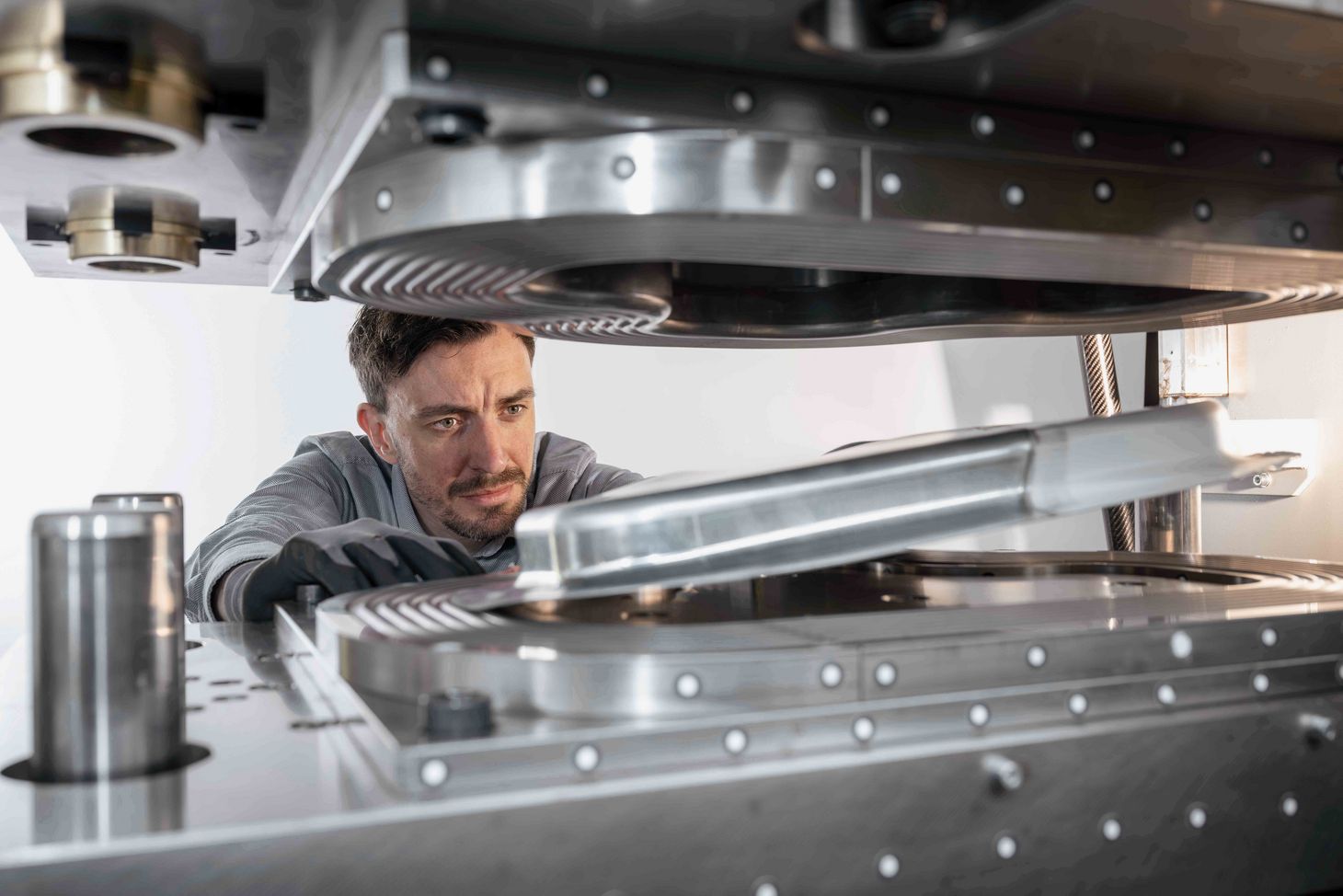 Finding the ideal clamping pressure is one of the most complex variables in the deep drawing process. If the edges (flanges) of the sheet are clamped too loosely, they soon slip and start to wrinkle and form folds. And if they’re clamped too tightly, the material can tear. “Conventional deep drawing methods use copious amounts of lubricants to prevent wrinkling and tearing,” Alexander Brosius says.