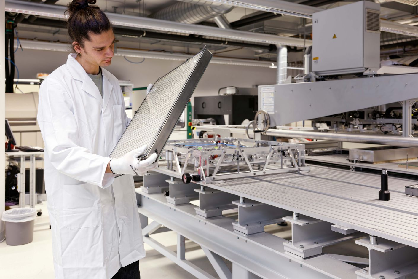 Once the ball lenses are in place, the panel containing them and the solar cells is inserted into a frame with a front glass panel, which is imprinted with additional silicone lenses. In a two-step process, the sunlight is concentrated by these lenses and the glass spheres—whereupon its intensity increases by a factor of one thousand before it’s converted into electricity in the solar cells.