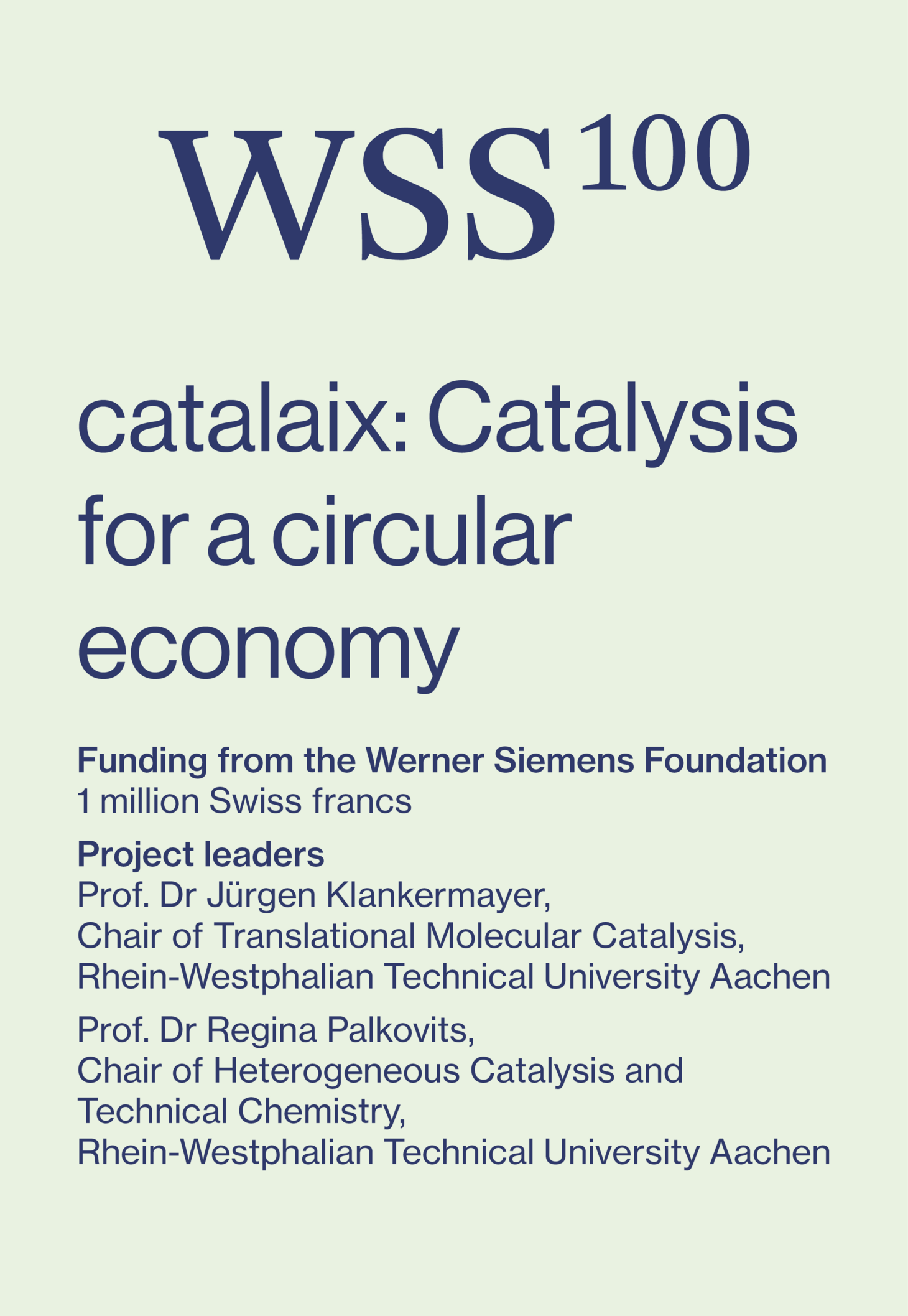 For their WSS100 proposal, the team led by Jürgen Klankermayer and Regina Palkovits at the Rhein-Westphalian Technical University Aachen developed a concept that can convert these kinds of waste streams into valuable, reusable resources. Their idea revolves around catalysis—the technology that accelerates the speed of chemical reactions. “Up to now, chemists have mainly sought new catalysts that create bonds,” Jürgen Klankermayer explains. “But we also need catalysts that break bonds down, and we have to start thinking about recycling plastics already during the production phase.”