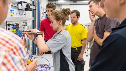 The first project, from 2013 to 2017, addressed apprentices in the fields of automation, auto-mechanics and electricity. Workshops, laboratories and remedial courses at the Sion technical upper-secondary vocational school in Valais were offered to the students to help them close any learning gaps and put their theoretical knowledge into practice. In one workshop, for instance, future electricians learned to assemble an electrical circuit and repair faults. The project was a success: ninety-three percent of all apprentices in Valais who had started a training programme during this time successfully completed it. This is particularly encouraging, as workers in these types of jobs are in demand on the labour market.
