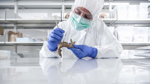 Das Projekt Paläobiotechnologie in Jena macht rasante Fortschritte. Vor zwei Jahren wiesen die Forschenden um Chemiker Pierre Stallforth und Archäogenetikerin Christina Warinner nach, dass ihre Idee funktioniert: In einer viel beachteten Studie im renommierten Fachmagazin «Science» zeigten sie erstmals auf, dass es möglich ist, aus dem Zahnstein von Frühmenschen Naturstoffe wieder herzustellen, die vor 100 000 Jahren von Bakterien produziert worden waren.