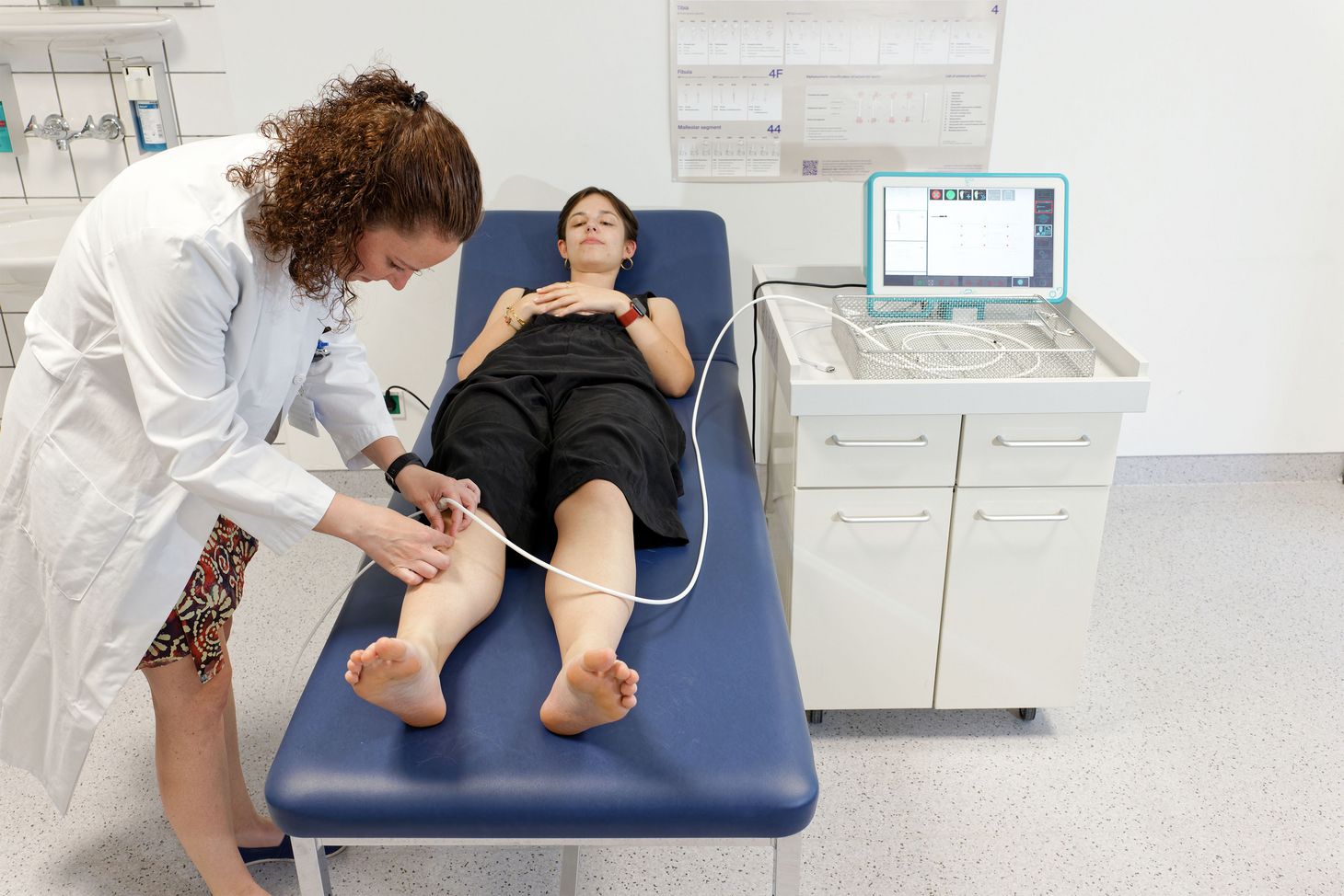 Gemeinsam mit ihren Medizin-Doktoranden Oana Scholz und Cedric Nowicki nutzte Bergita Ganse solche Geräte zur Messung von Frakturheilungen. Über mehrere Monate hinweg verfolgten sie den Heilungsverlauf von insgesamt 55 Patientinnen und Patienten mit Schienbeinbrüchen und verglichen dies mit Kontrollgruppen von 51 gesunden Menschen. In zwei kürzlich erschienenen Studien (*) zeigen die Forschenden auf, wie sich Blutfluss und Sauerstoffsättigung nach einem Knochenbruch verändern – und dass sich der zeitliche Verlauf bei gut heilenden Brüchen vom Verlauf bei schlecht heilenden Brüchen unterscheidet.